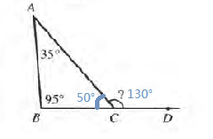 $$\angle ACB=180°-35°-95°=50°$$ $$\angle ACD=180°-50°=130°$$